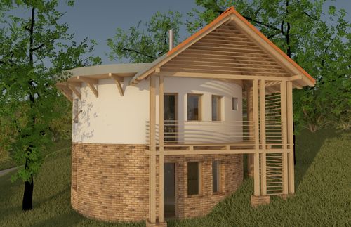 A kör közepén – ami a ház tömegközéppontja is egyben – egy tömegkályha található. A kályha jobb helyre nem is tehető, mivel a tökéletes energetikát gömb forma biztosítja, és ehhez a körház nagyon közel áll. A ház központja adja a ház melegét nem is akárhogyan.